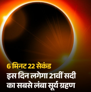 सोशल मीडिया पर साल के दूसरे सूर्य ग्रहण को लेकर चल रही अफवाहों को दरकिनार करते हुए, जानकारों ने स्पष्ट किया है कि ‘सदी का सबसे बड़ा सूर्य ग्रहण’ 2027 में लगने वाला है. यह ग्रहण 2 अगस्त, 2027 को लगेगा, जो 21वीं सदी का सबसे लंबा सूर्य ग्रहण होगा , यह लगभग 6 मिनट 22 सेकंड तक चलेगा. इतना लंबा ग्रहण इसके बाद साल 2114 तक नहीं होगा.
